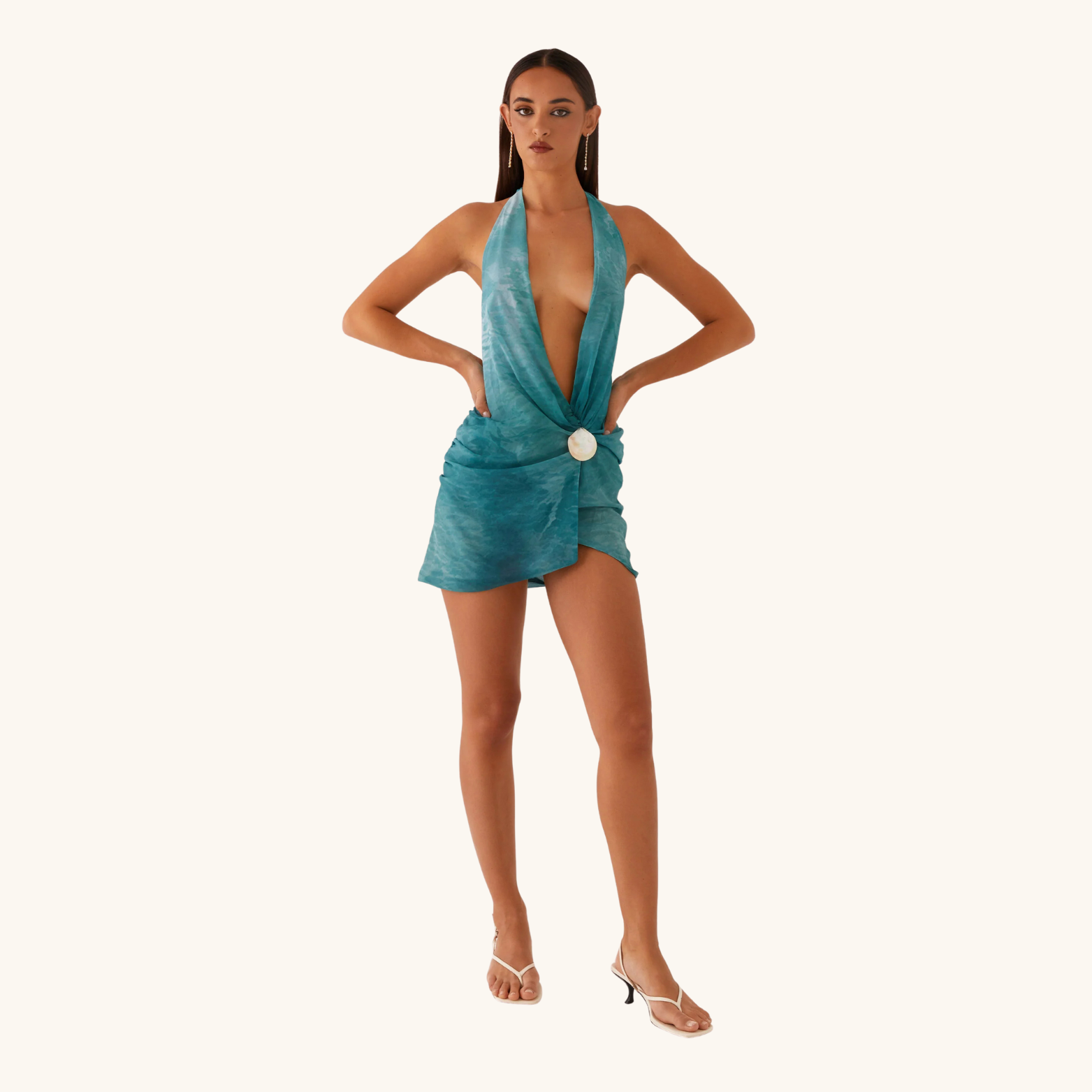 The Canary Veil Mini Dress is a statement piece made to turn heads. Its deep plunging neckline balances daring allure with modern sophistication, while the vibrant green tie dye pattern adds a playful, energetic edge. The fitted silhouette contours the body beautifully, creating a flattering, streamlined shape that’s perfect for nights out or special occasions. Lightweight and comfortable, Eleanora moves with you, combining bold style and effortless confidence in one eye catching mini.