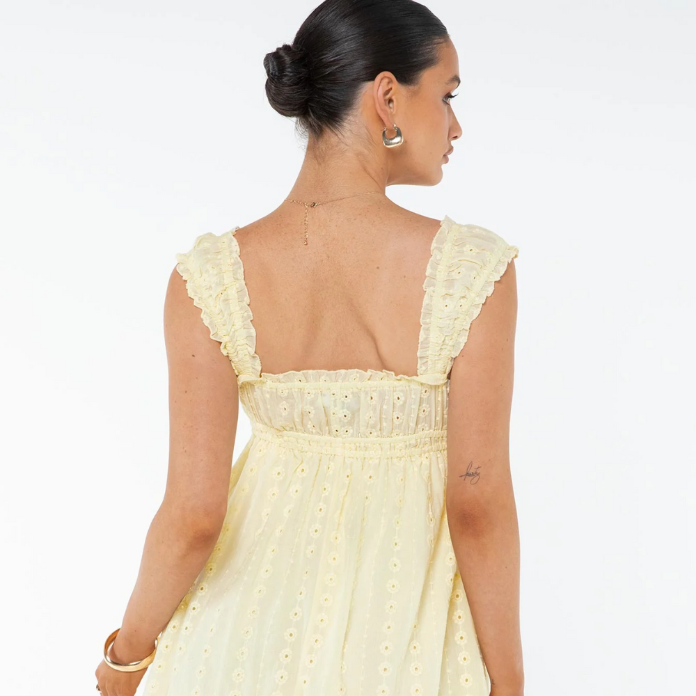 The vibrant yellow tone of the Iris Patterned Mini Dress captures the essence of sunny days, while the flattering mini cut adds a youthful, feminine charm. Its flowing fabric ensures effortless comfort and movement, making it perfect for brunches, garden parties, or casual evenings out. Light, lively, and stylish, Carlita is the dress that elevates everyday moments.