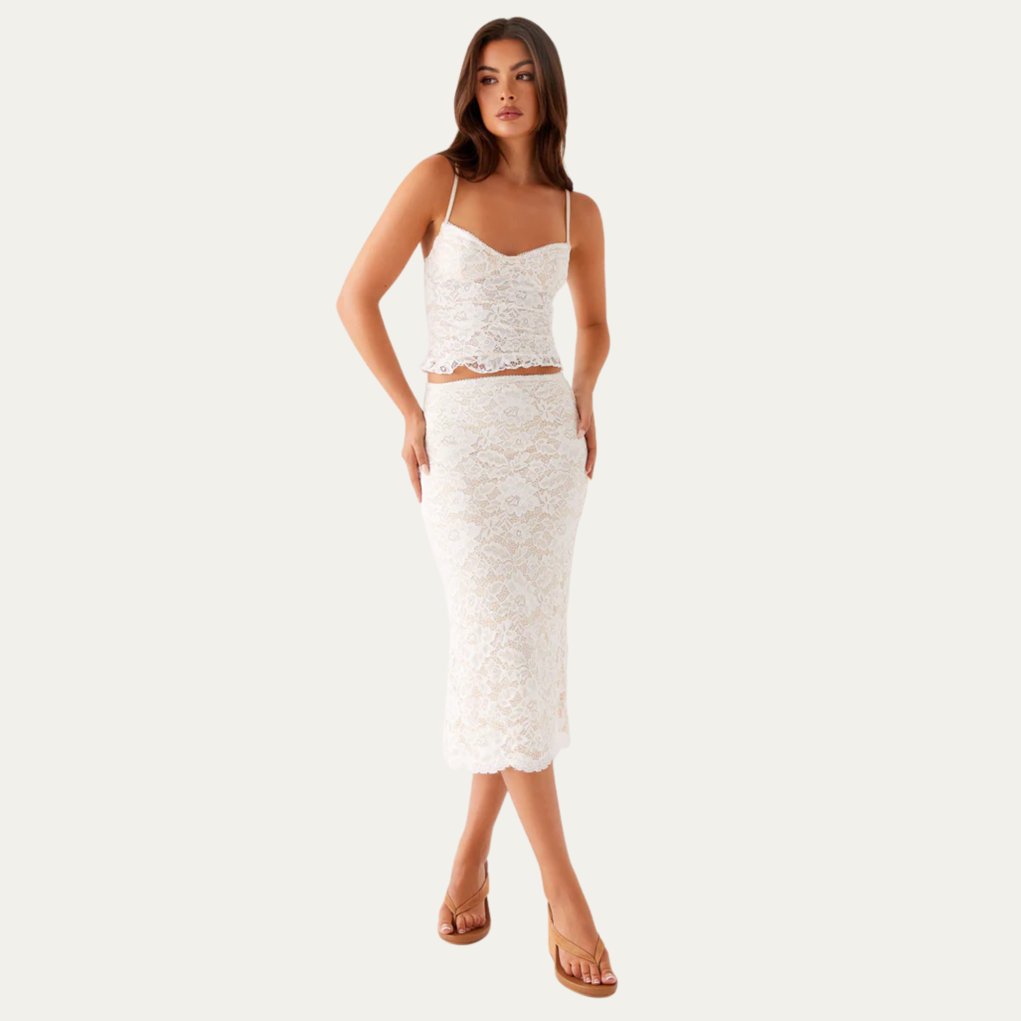 Juliet Ivory Lace floats delicately against the skin, crafted from sheer floral lace that adds the perfect touch of softness to any outfit. Its slim straps, scalloped edges, and lightweight feel make it the ultimate layering piece pretty enough to wear on its own, timeless enough to style under blazers or cardigans.