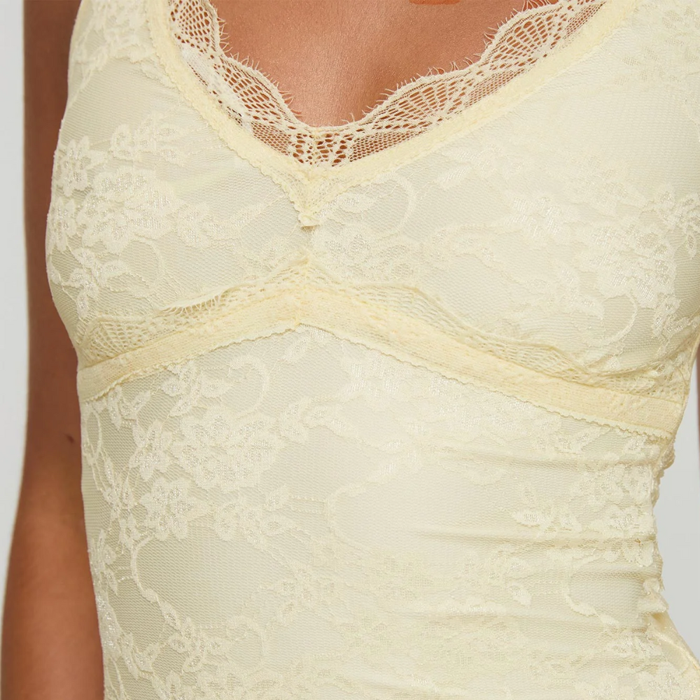 Carnelian Lace Tank Top is elegantly designed with a subtly cropped cut that flatters the waistline. Scalloped edges along the hem and neckline delicately accent its shape, adding a feminine finish that feels both timeless and current. Underlay lining ensures you’re supported without sacrificing the ethereal lace detail, while its stretch knit foundation moves with your body for comfort through every moment.