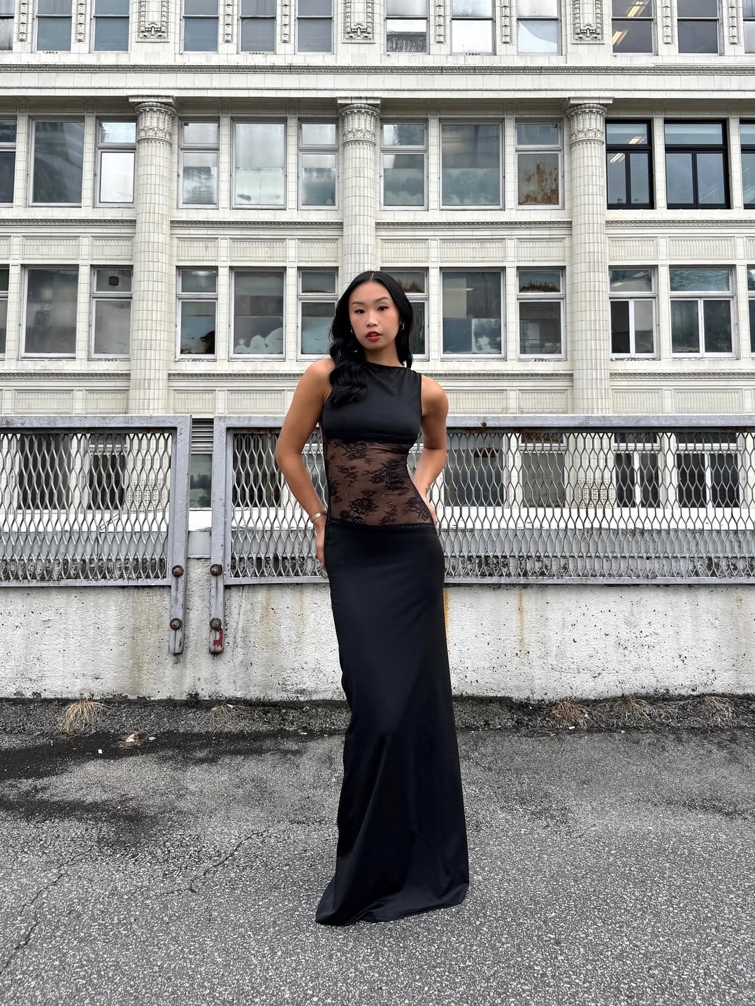 This is the piece you put on when you want your presence to speak before you say a word. From the moment you enter a room, the sleek, flowing silhouette commands attention, the low back and buckle detail hint at mystery, and the perfectly draped fabric catches the light regardless how bright or dim. It’s a timeless canvas that lets you own the spotlight, turning heads effortlessly while exuding confidence, elegance, and undeniable allure.