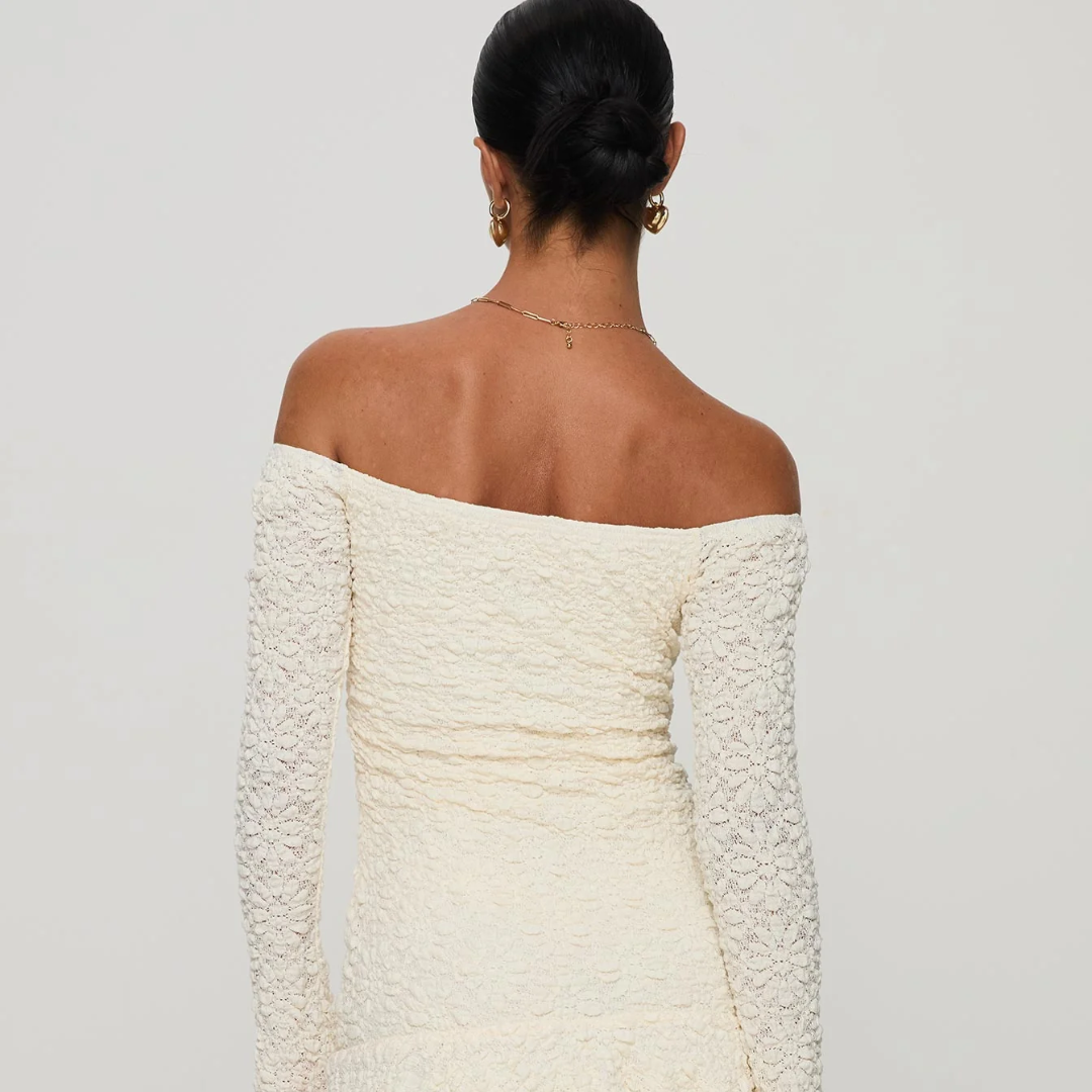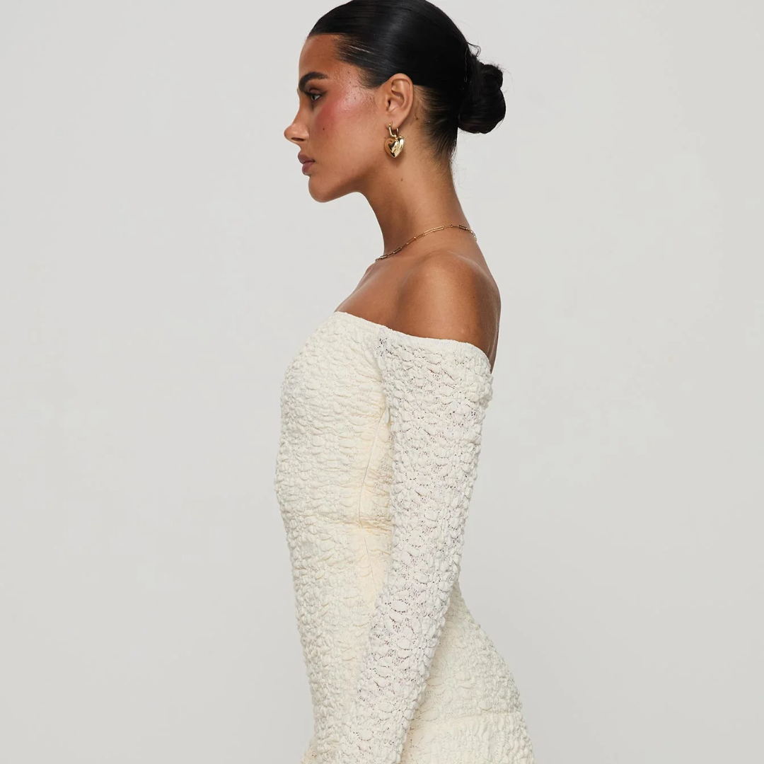 The Velle Lace Mini Dress radiates effortless sophistication with a playful twist. Its strapless neckline draws attention to the collarbone and shoulders, while the fitted bodice contours your figure gracefully. The cream hue offers a soft, luminous canvas that compliments every skin tone, and the mini length adds flirty energy without compromising elegance. Designed to move with ease, this dress balances structured tailoring with subtle stretch, creating a look that feels polished, contemporary, and undeniably confident.