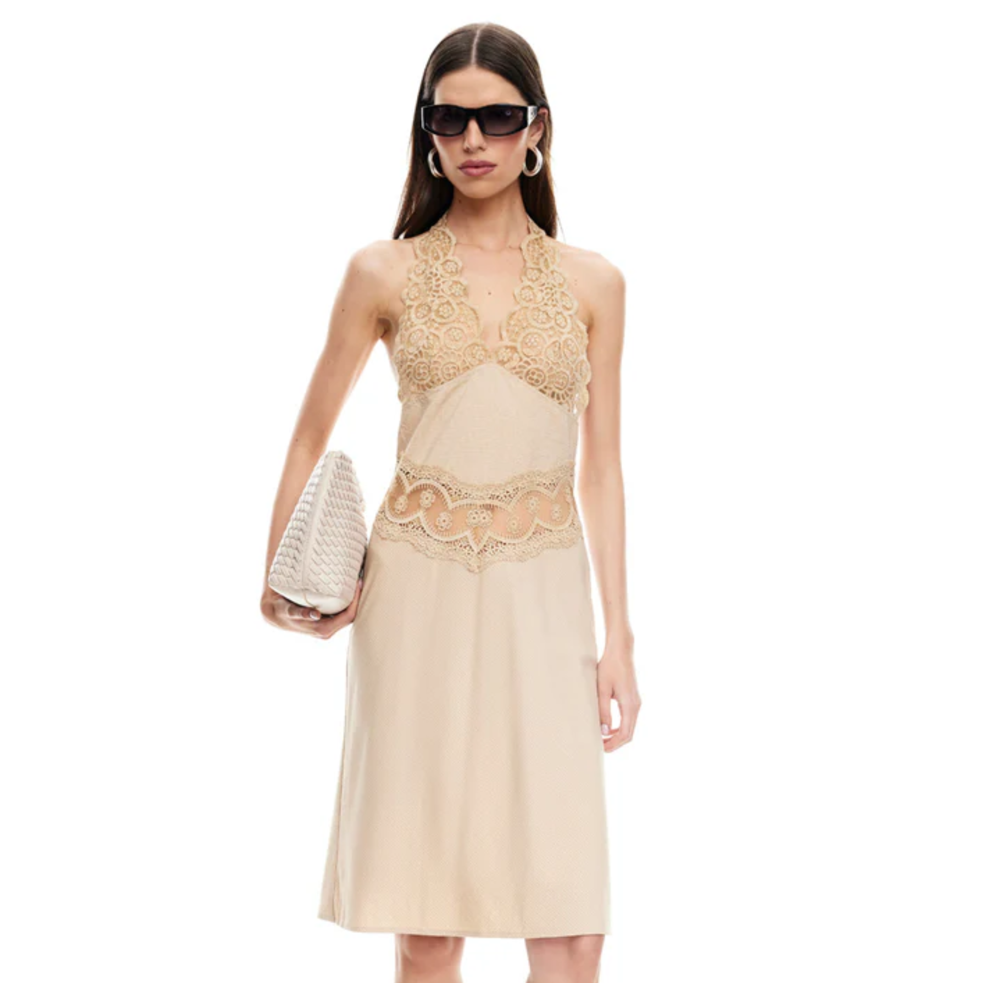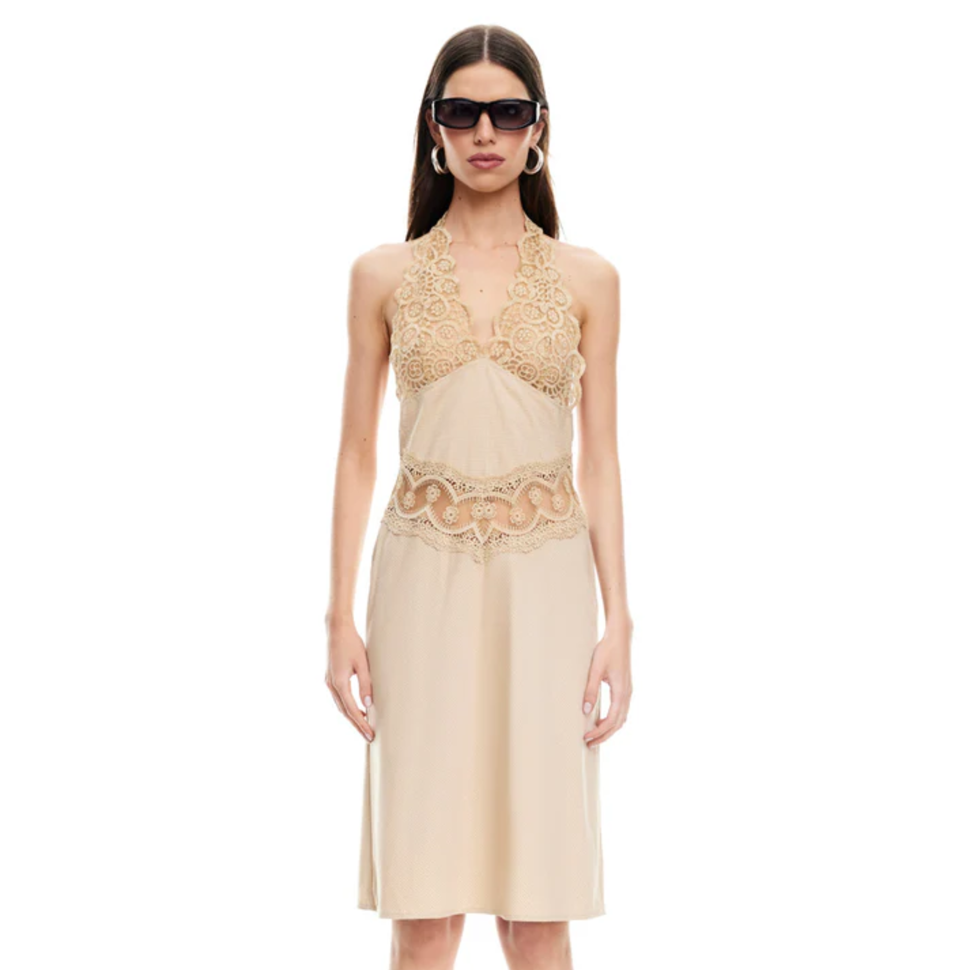 Embrace a vintage inspired look with this halter midi dress in soft beige plaid. The flowing silhouette and lightweight fabric create an airy, feminine feel, while the classic check pattern adds subtle charm. Ideal for day to night transitions, the Solana Plaid Mini dress is a versatile staple for your wardrobe.