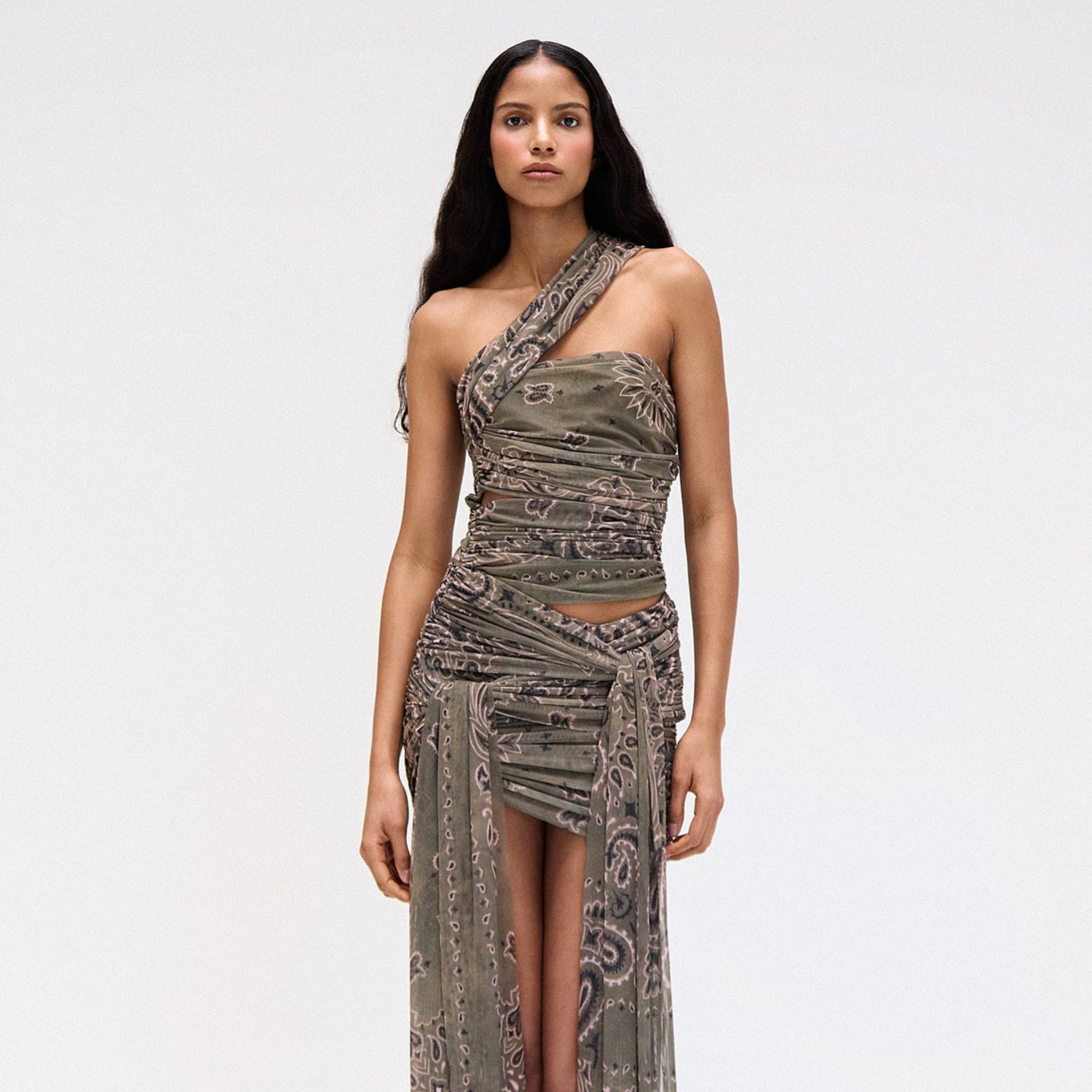 Crafted from lightweight tulle, Vera Tango Set features an asymmetrical wrap design and a subtle paisley pattern, adding effortless charm to any outfit.